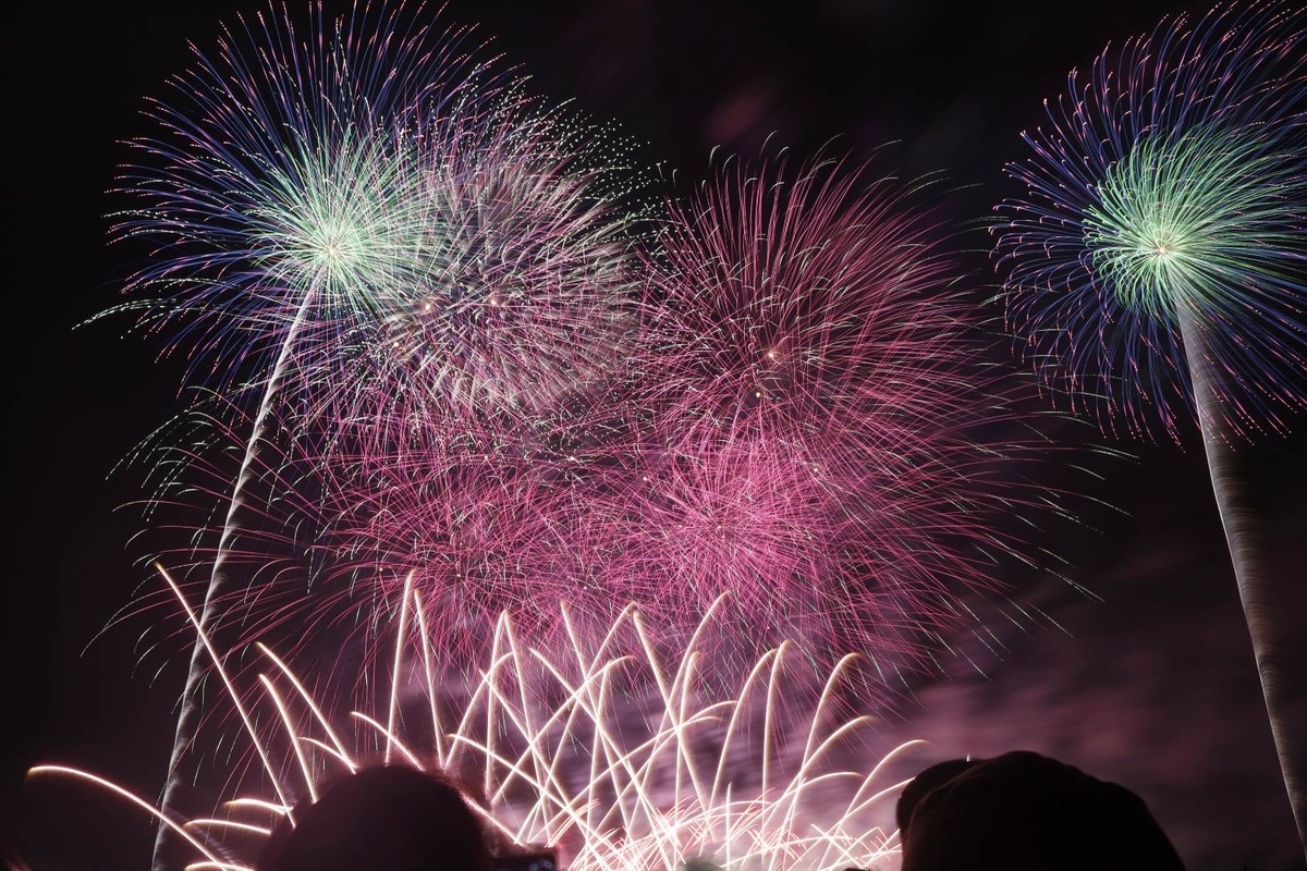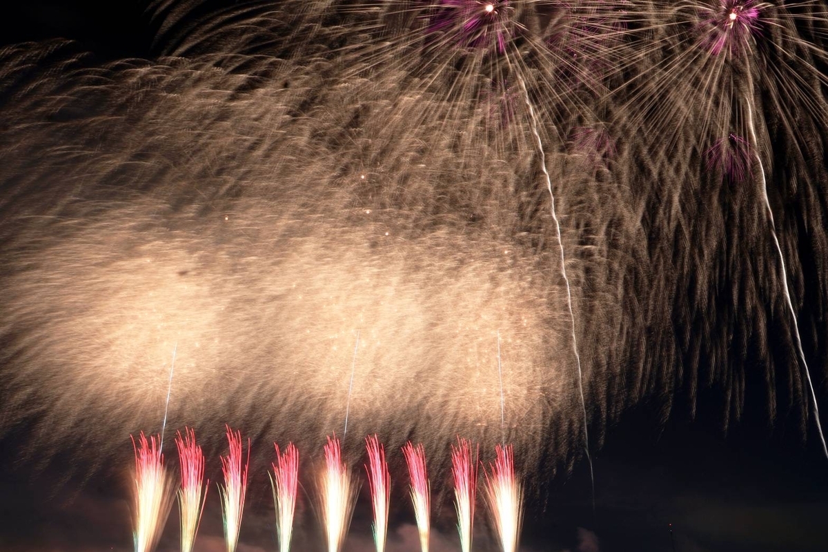 前回開催が10年前で情報が古かったので期待値もそんな高くありませんでしたし、事前の筒の配置からはそこまでワイドには見えなかったのでどんなものになるのか期待と緊張を持っていきましたが,尺玉がかなり右から上がるのでワイド感がありました!